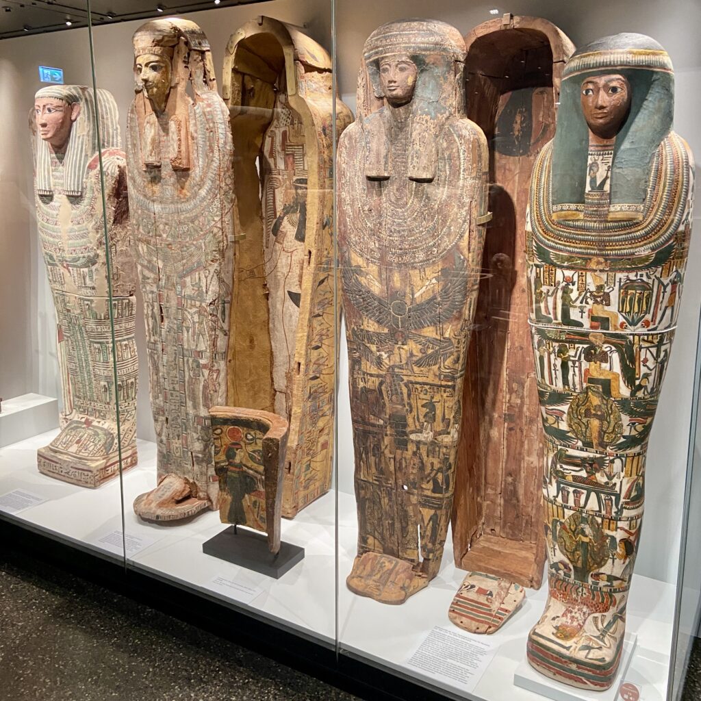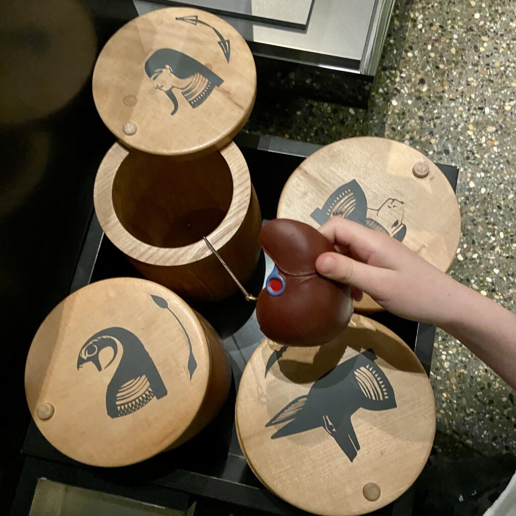 The newly renovated Ancient Egypt section, located on the lower level, offers a glimpse into life thousands of years ago. The collection includes intricately decorated sarcophagi, jewelry, mirrors, hieroglyphs, and everyday objects that reveal how Egyptians lived and worked. Our children especially loved the kid-friendly drawers that encourage hands-on learning—they could feel the difference between clay and limestone or discover which organs were placed in canopic jars during mummification.