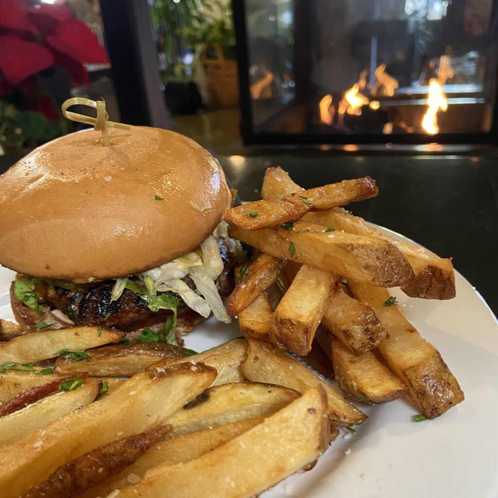 Nestled in the heart of downtown Los Olivos, Los Olivos Wine Merchant & Café is one of our favorite spots to enjoy a meal during a Central Coast wine country getaway. This charming restaurant offers a welcoming atmosphere with both indoor and outdoor seating — perfect for relaxing between wine tastings in Los Olivos. The menu features a wonderful variety of options, including fresh salads, wood-fired pizzas, pasta, burgers, and sandwiches made with locally sourced ingredients. We loved the Caesar salad, burgers, and pizza, and the family-friendly menu makes it a great choice for travelers with kids.