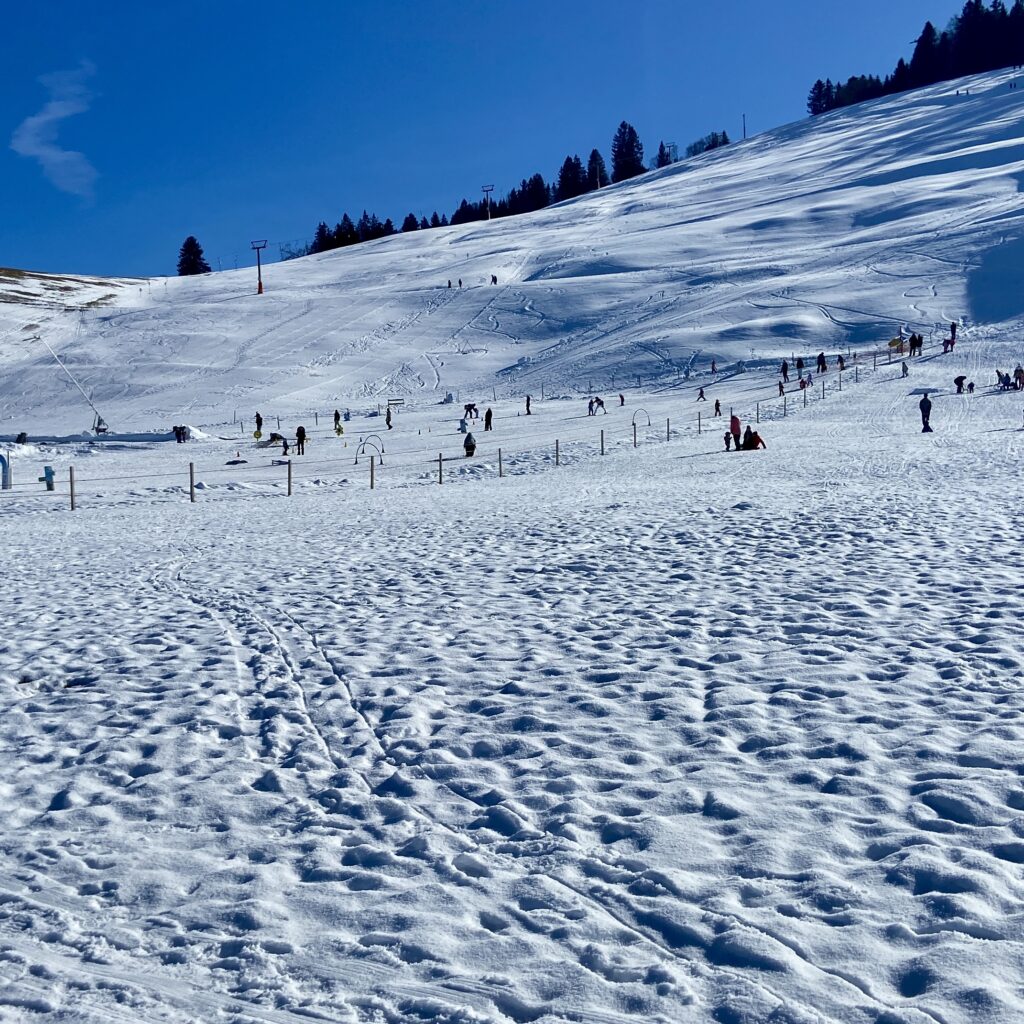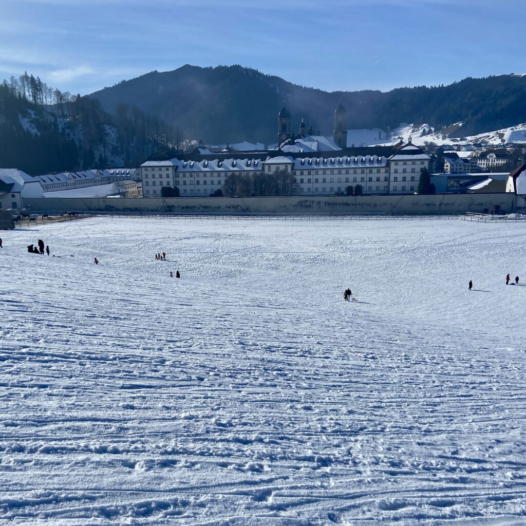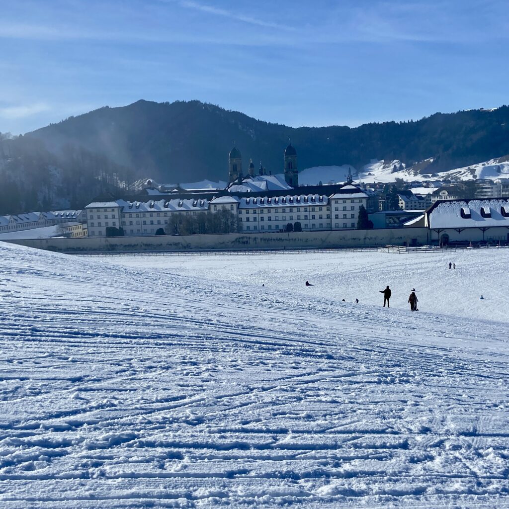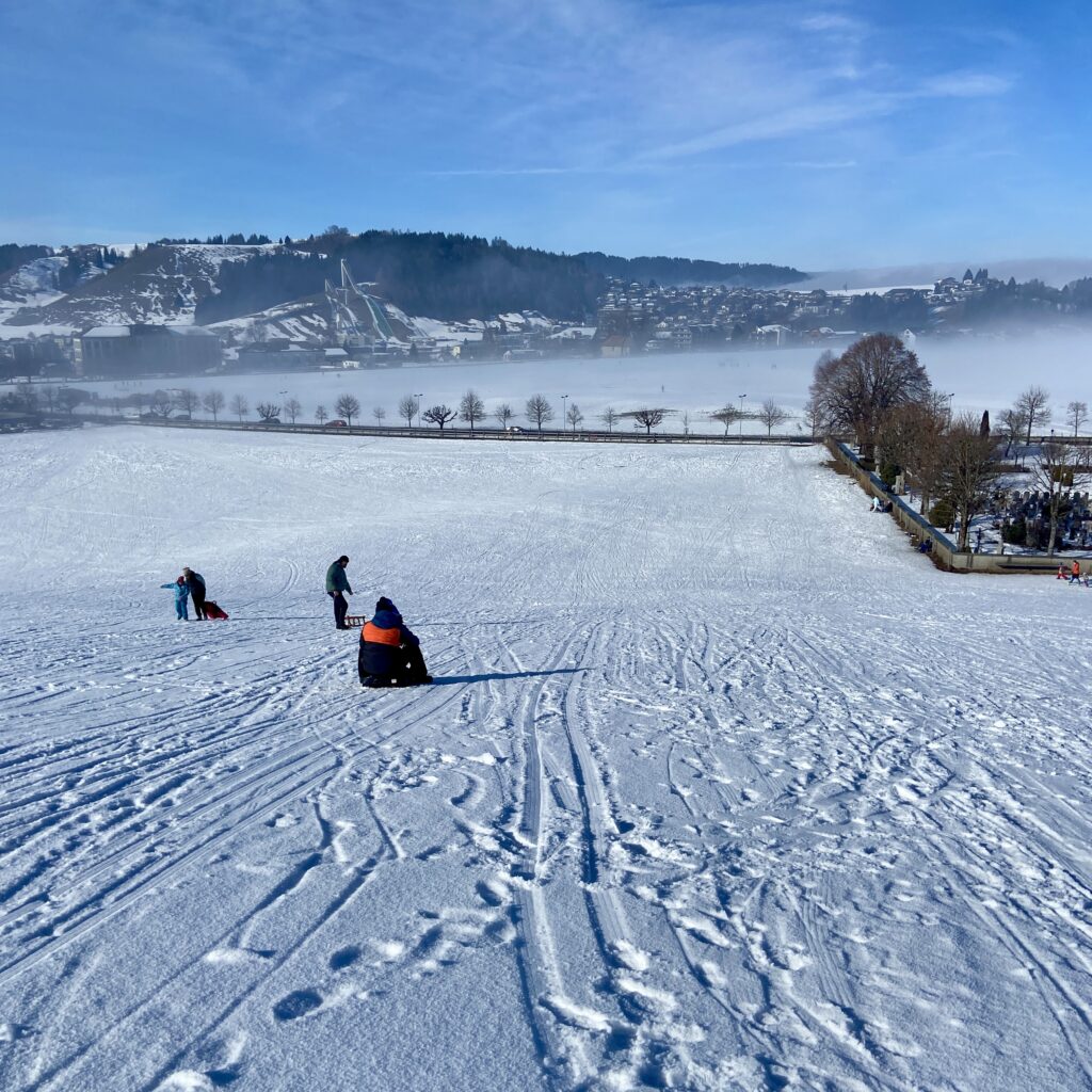 Our kids absolutely loved sledding here. They were worn out from climbing the hill but completely thrilled by the fast runs. After a few rounds, consider stopping by the Milch Manufaktur Einsiedeln for fondue and ice cream—a wonderful way to warm up. The abbey and the charming town are also well worth exploring. With its beautiful setting, easy access, and plenty of family fun, sledding in Einsiedeln makes for a memorable winter day trip from Zurich. For more family friendly winter recommendations, check out our blog.