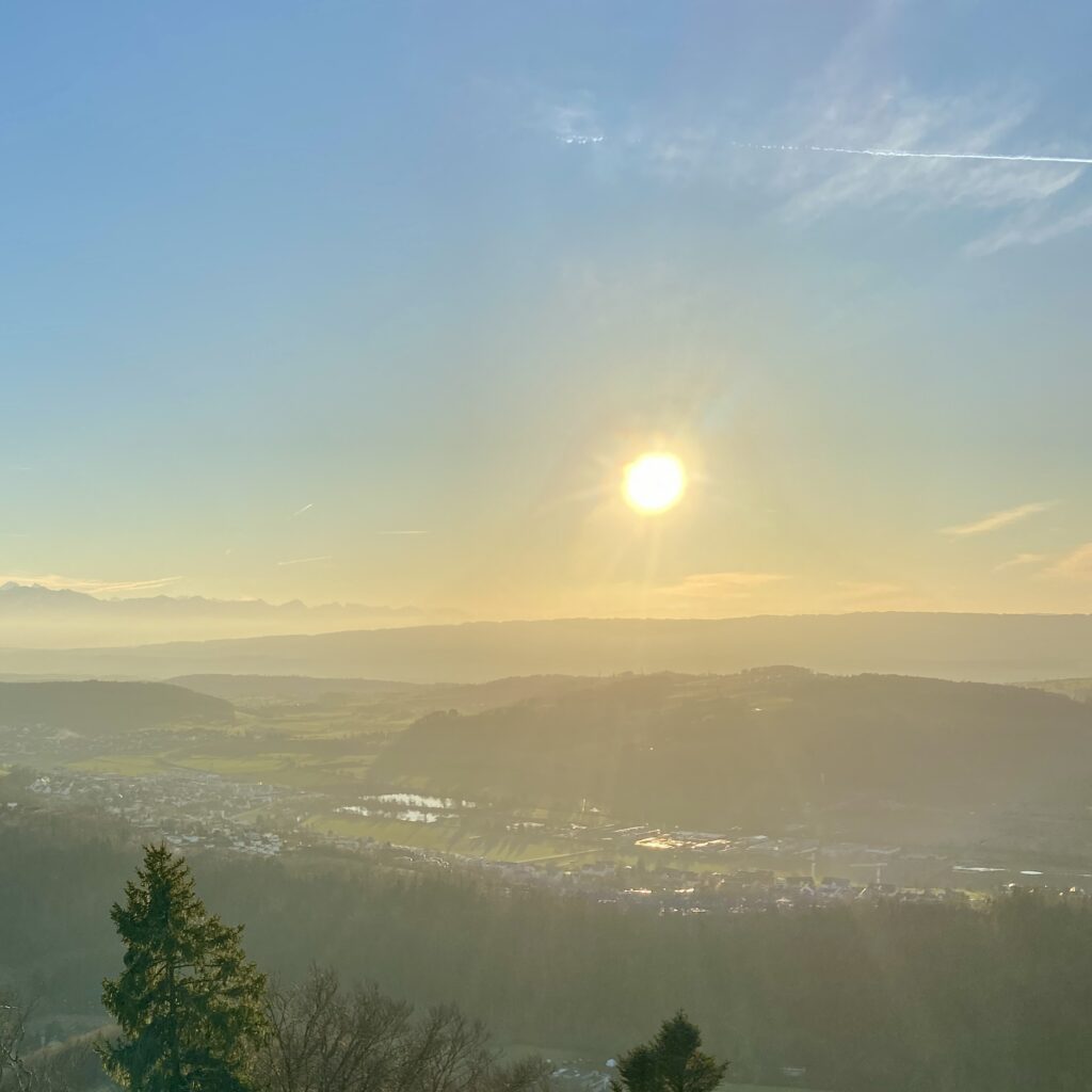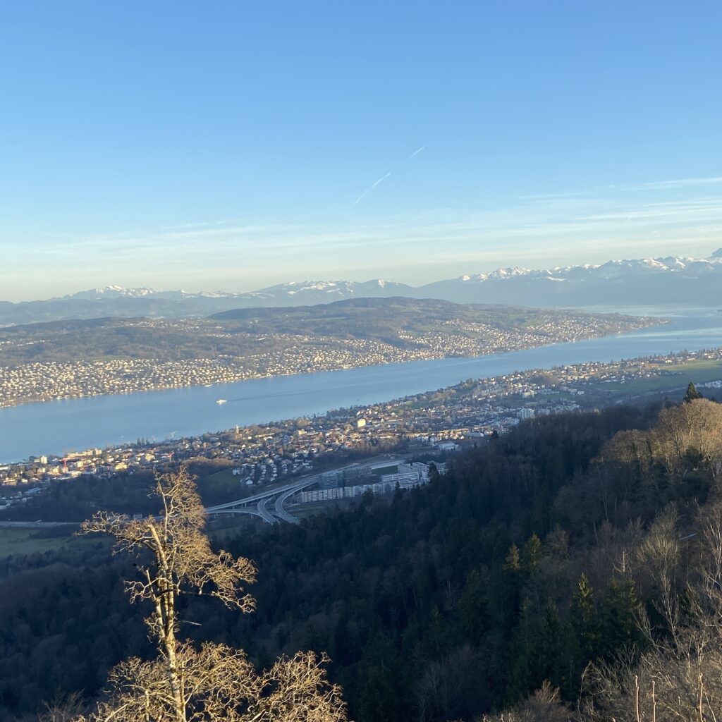 Uetliberg rises to 870 m (2,850 ft.), with its summit known as UTO Kulm. From here, you can enjoy panoramic views of Zurich, Lake Zurich, and the Alps in the distance. The landmark communication tower offers an even higher vantage point, but climbing to the top requires a ticket. We find the observation terraces more than enough to enjoy the scenery, so we have never climbed the tower ourselves. On a clear winter day, the views are breathtaking.