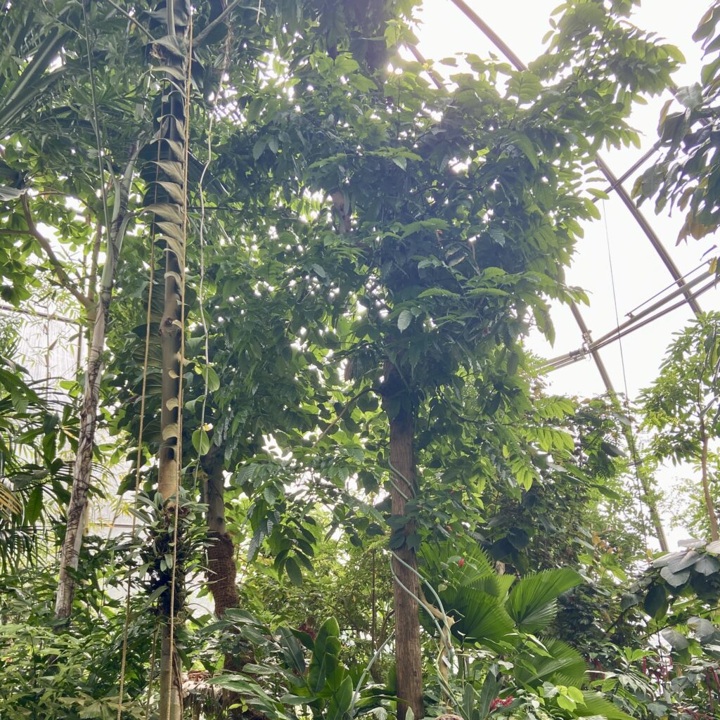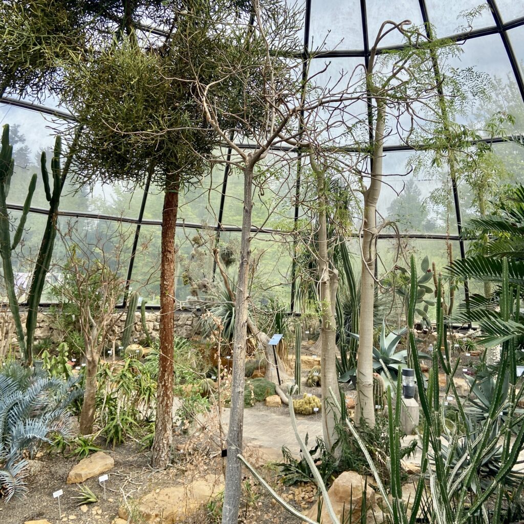 The three tropical greenhouses were a highlight of our visit. The impressive glass domes each have their own unique climate, featuring tropical, desert, and temperate environments. They house over 7,000 plant species. The tropical greenhouse feels like a jungle, complete with a viewing platform and exotic plants like cocoa trees. We really enjoyed the desert dome with the variety of cactai. Stroller parking is available outside, and there are stairs indoors to explore the space.
