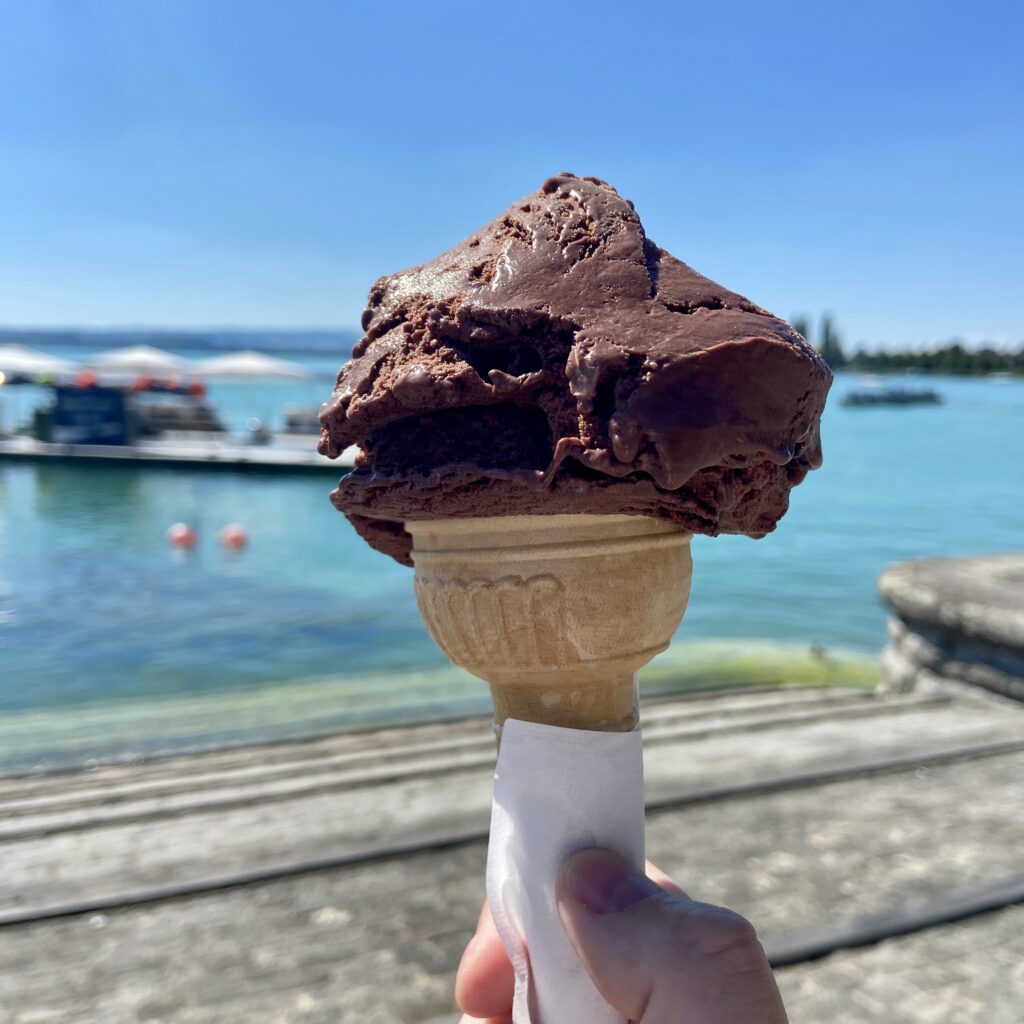 Our family enjoys visiting Dieci Gelateria in Zug, located in the charming old city on the beautiful lakeside promenade. Dieci is a popular chain of Italian restaurants and gelato shops known for serving authentic Italian gelato, pizza, and classic dishes that our family loves. The Zug location is a small, cozy shop offering a variety of gelato flavors and drinks. We especially appreciate the shaded seating area with high-top tables overlooking Lake Zug, making it a great spot to relax while enjoying the views.