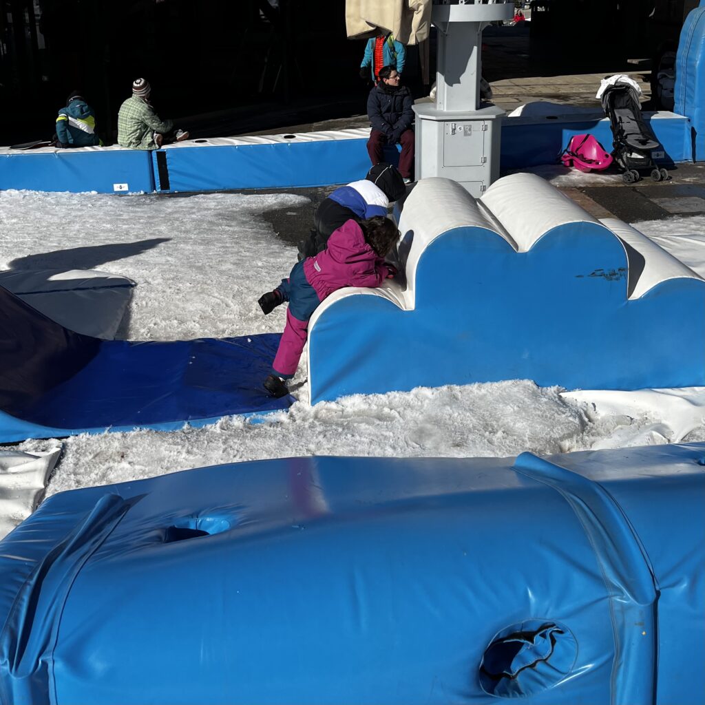 In the town at the base of the mountain, there is an outdoor Arctic-themed soft playground, free for families with children ages 2–6. Our kids enjoy climbing, crawling, and exploring here during a break from skiing or other activities.