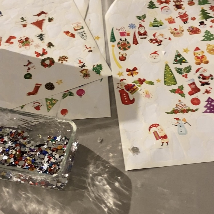 Guests were able to sign up to decorate a glass angel, tree, and/or candle holder. With reduced prices on the glass pieces, it was a fantastic opportunity for our kids to create personalized gifts for their grandparents. Guests are provided with a variety of stickers, sequins, and ribbon to personalize their glass object. Our kids enjoyed this opportunity to make special gifts for their family.
