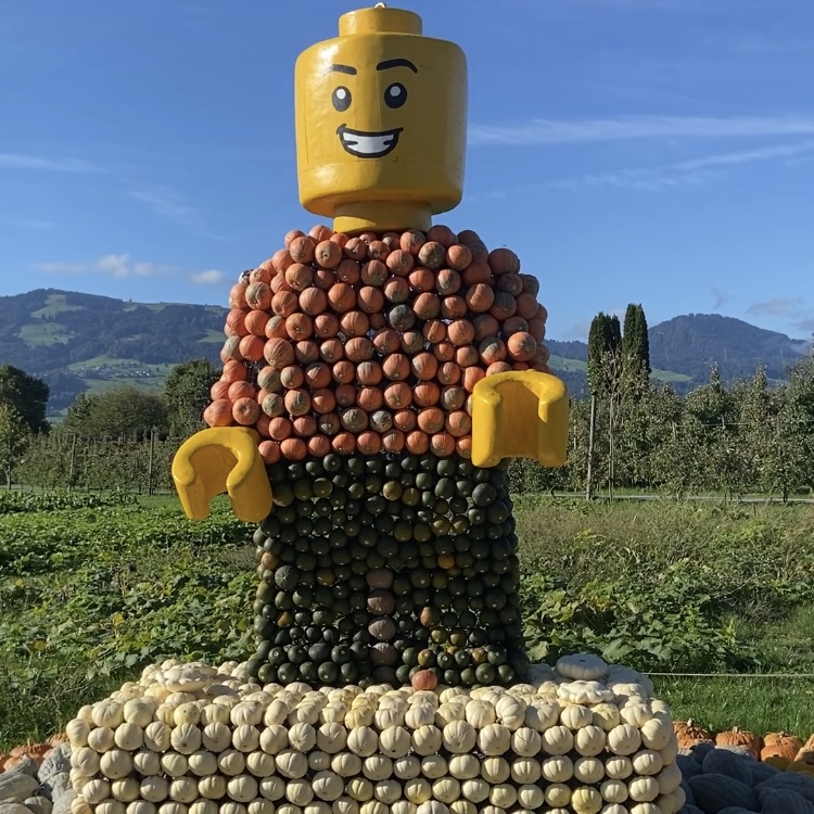 Jucker Farm is a collection of four adventure farms in northeastern Switzerland. These family-friendly farms host seasonal events throughout the year, and our favorite is pumpkin season. From September through November, the farms showcase free pumpkin displays that our family looks forward to visiting every year. We traditionally visit Jucker Farm Bächlihof, located near Rapperswil, just 40 minutes south of Zurich by car. A visit usually takes about four hours—plenty of time to admire the pumpkin displays, let the kids enjoy the playground, and have a meal in the farm courtyard.