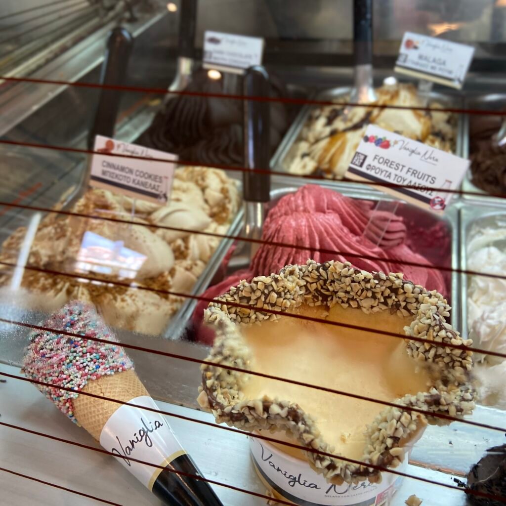 If you’re looking for the best ice cream in Agios Nikolaos, look no further than Leonardo. Situated right by the edge of the charming port, this local favorite is the perfect spot for families to take a break. Our kids especially loved the waffle cones and the colorful ice cream bowls topped with sprinkles. The shop offers a wide selection of flavors, served in your choice of a cup or cone. In addition to ice cream, you’ll find a variety of refreshing iced coffees and cold drinks. We enjoyed the outdoor seating overlooking the port, which creates a relaxing atmosphere to cool off on a warm summer day while watching the boats come and go. Whether you’re stopping by for a mid-afternoon snack or an after-dinner treat, the combination of delicious ice cream and a scenic view is hard to beat. For more family travel tips and local recommendations in the area, be sure to check out our blog.