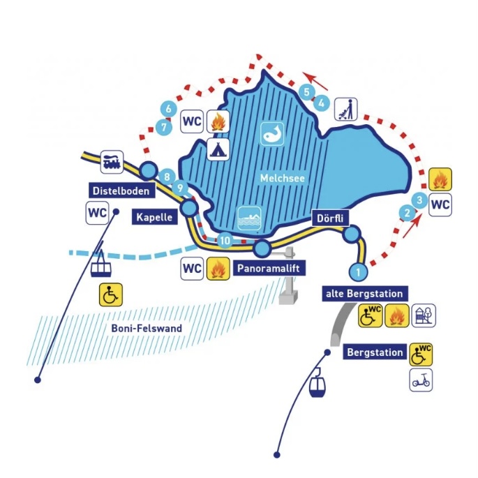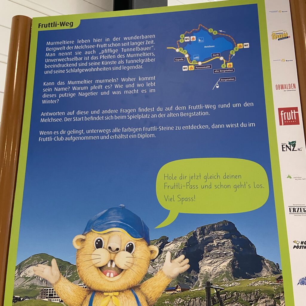 The Fruttli-Weg is a 3.5 km (2.2 mile) loop that begins and ends at the cable car station. Walking at a steady pace, it can be completed in an hour, but with kids—and ten interactive activity stations along the way—you’ll want to allow two to three hours to enjoy it fully.