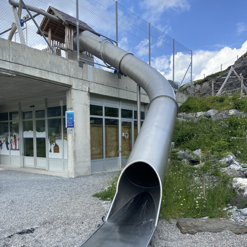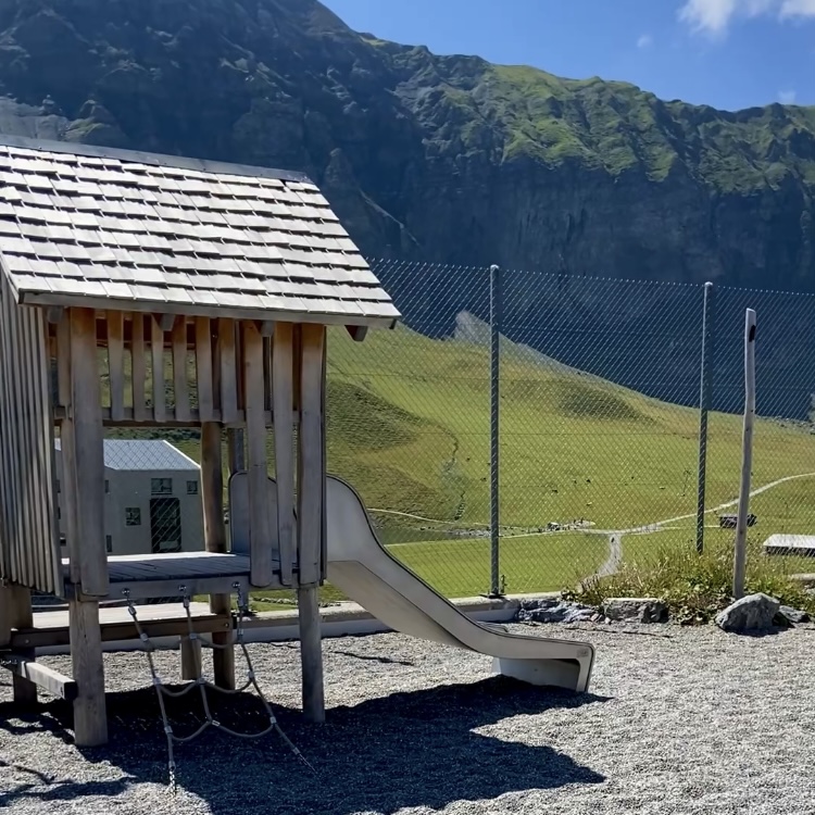 Right outside the cable car station sits a fantastic playground, which also happens to be the first stop on the Fruttli-Weg. With zip lines, swings, climbing towers, slides, and even a giant marble run—all framed by stunning Alpine views—it’s tempting to stay for hours. We limited our time to save energy for the trail, but for those planning a picnic, tables are conveniently nearby.