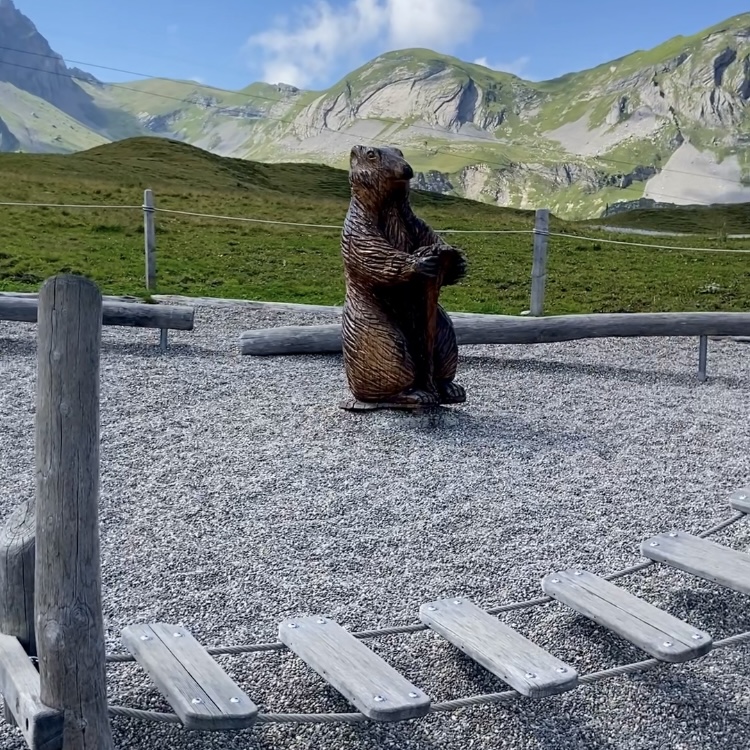 The stations were wonderfully creative—teaching children about marmots, nature, and the Alpine ecosystem. The signs are in German, but we easily translated them using Google translate. Our seven-year-old managed the challenges easily, while our four-year-old sometimes needed help, especially at the trickier telescope station (tip: the answer appears toward the end of the hike!). Note that some activities involve water, so plan ahead. The climbing structures were a particular highlight for our kids.