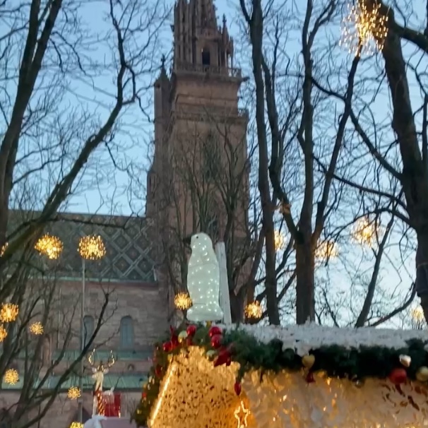 The Christmas Market in Münsterplatz, Basel, nestled next to the stunning gothic Basler Münster cathedral, offers a truly magical atmosphere. As you enter, a large, beautifully decorated Christmas tree welcomes you, and the surrounding park trees twinkle with hanging white lights. While the atmosphere is inviting, it is a very crowded and popular market which can make it more difficult to navigate especially with small children.