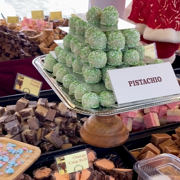 Food lovers can enjoy both Swiss specialties and international treats, with sweets such as English fudge available for sampling. Several charming huts with seating areas create a cozy atmosphere for enjoying snacks and hot drinks. There is also a Fondue Chalet on-site, and reservations are recommended.