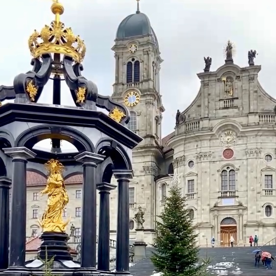 Einsiedeln Christmas Market – with breathtaking backdrop of the Benedictine Abbey including several market stalls, delicious treats and small carousel