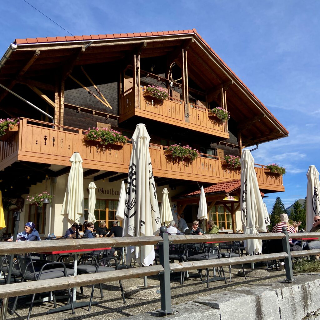 Just before the Owl Path entrance, you’ll find Gasthaus Restaurant Waldegg, a family-friendly spot perfect for lunch. The restaurant features a children’s menu, high chairs, a baby changing station, and a playground so parents can relax while kids continue to play. With both indoor seating and a sunny terrace overlooking the mountains, it’s an ideal place to recharge during your day out.