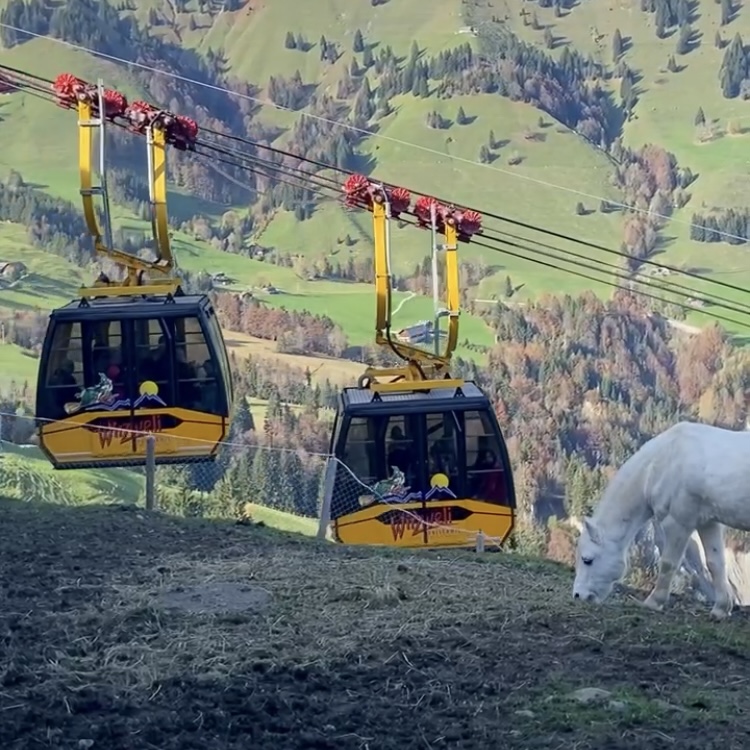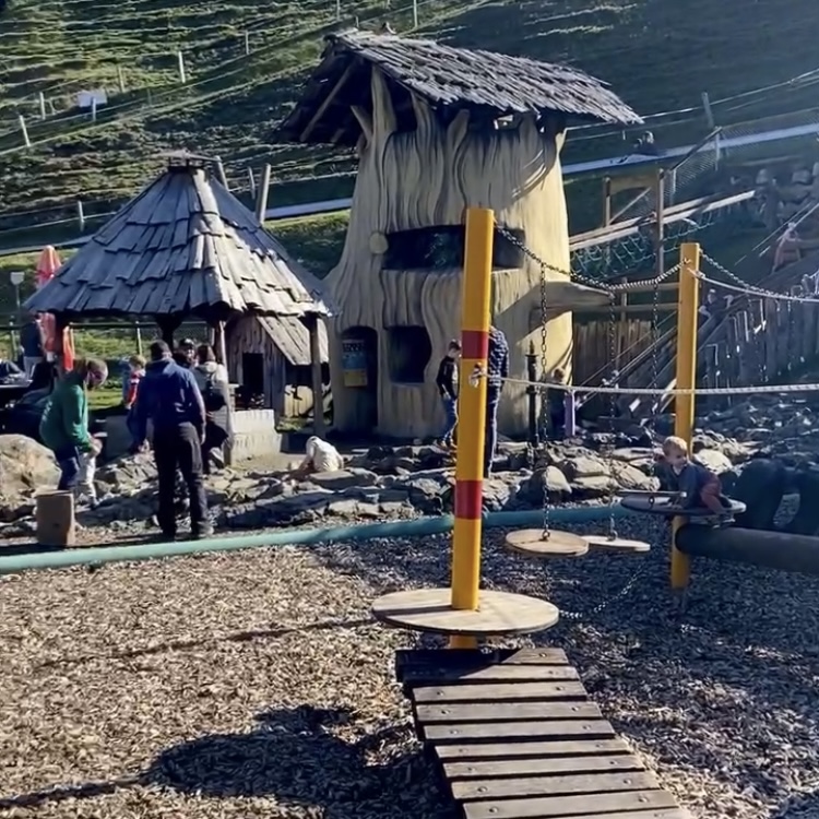 One of the highlights of a family trip to Wirzweli is the Witch Trail (Hexenweg). To reach the trailhead, follow signs to the smaller cable car that takes you up to Gummenalp. Since this lift only holds six people at a time, we recommend starting your day here to avoid long waits. Tickets must be paid in cash at the Gummenalp top station. The Hexenweg is a 3.2 km, mostly downhill hike, suitable for children aged four and up (but not stroller-friendly). Along the way, benches offer convenient snack stops while you enjoy panoramic mountain views. Kids will love the interactive witch-themed stations, like the broomstick zip line, spider webs, and Lizi’s little house. At the end, children can even collect a colorful “magic stone” as a souvenir of their adventure. This trail is particularly special in autumn and makes for an unforgettable family Halloween outing. It took our family 1.5 hours to complete the trail. For more detailed information on this hike, click here.