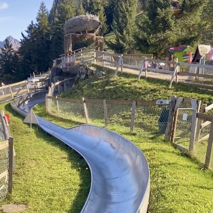 Next to the playground, the Wirzweli summer toboggan run offers pure excitement. The 535-meter track may be shorter than the one at Pilatus, but it still delivers plenty of thrills. My son raced down again and again. Tickets are sold directly at the toboggan entrance beside the playground.