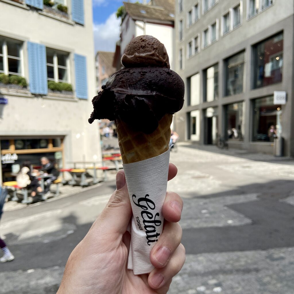Family-friendly Gelati Niederdorf in Zurich’s historic old town offers tasty gelato with playful animal toppings perfect for kids and parents alike.